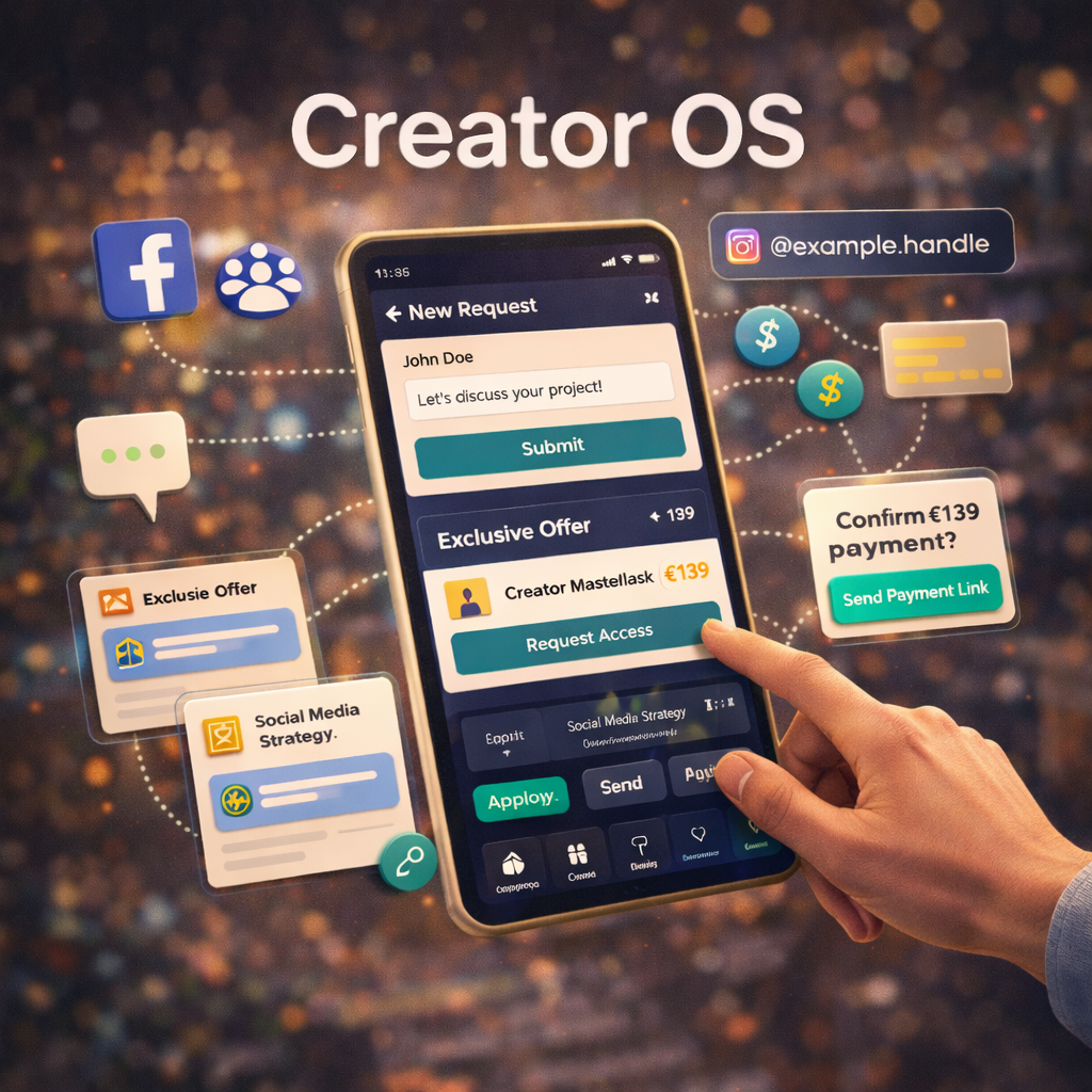 Creator OS is a lightweight "social commerce" operating system for creators, community owners, and group admins who want to turn attention and trust into structured actions — without building a storefront or using marketplaces.